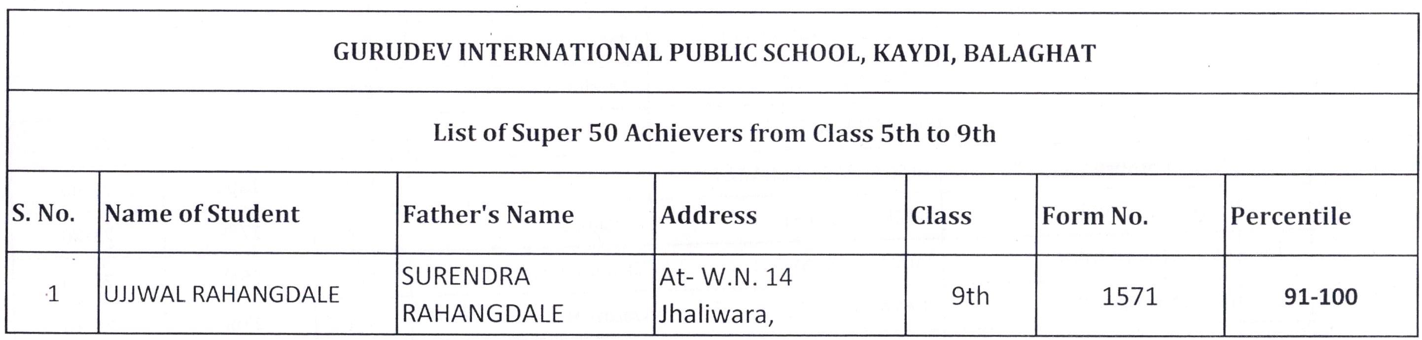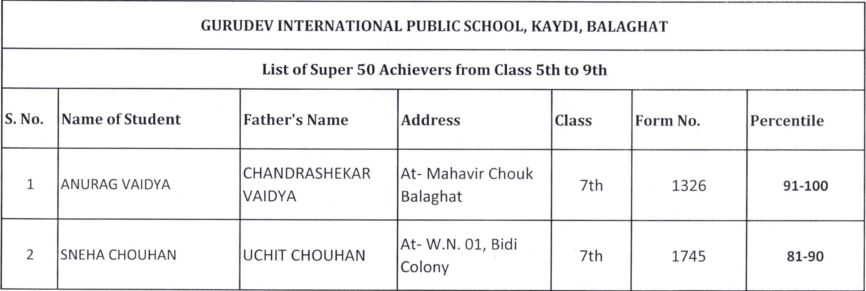 GURUDEV TALENT HUNT RESULTS (PHASE - 2) 2017-18 CLASS - 7th